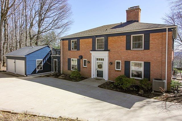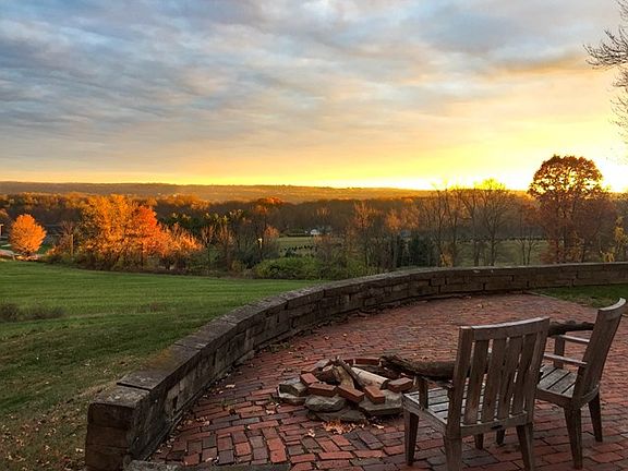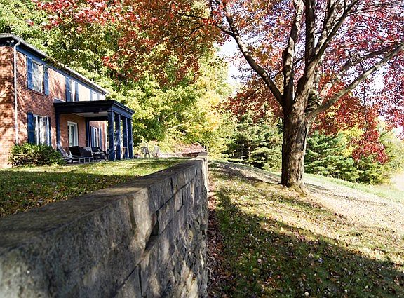 A magical place with spectacular views! A place where the sun sets gloriously, patio fire pit burns warmly, and good wine and fine scotch is sipped slowly. Enshrined amidst limestone terrace walls and set atop 18 prime acres, the original Bissman Estate all-brick colonial stands tall, proudly overlooking the Lexington valley below. The floors are adorned in solid oak throughout. Kitchen w/ high end stainless appliances. Sumptuous master suite w/ heated tile floor and giant dual-head tile shower. Finished walkout basement with granite wet bar, rec room with fireplace and 5th BR. Spacious rooms and abundant storage. 32x16 barn w electric. Mud room. Amazing fall foliage and fireworks!