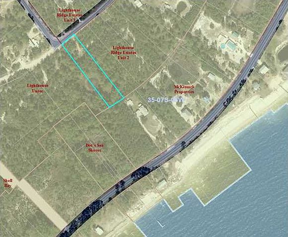 Large 1.2 acre homesite in Lighthouse Ridge subdivision offering privacy and seclusion located just minutes from beautiful Carrabelle Beach, the Crooked River lighthouse and public boat launches. The property should provide good views of the gulf once property in front is cleared. Pond on property. Approximate property dimensions are 100' wide by 500' deep for this level and partially cleared lot. Plenty of room for your home plus out buildings and boat storage. Zoned for both single family and mobile homes. Perfect property for your fishing getaway or permanent residence.