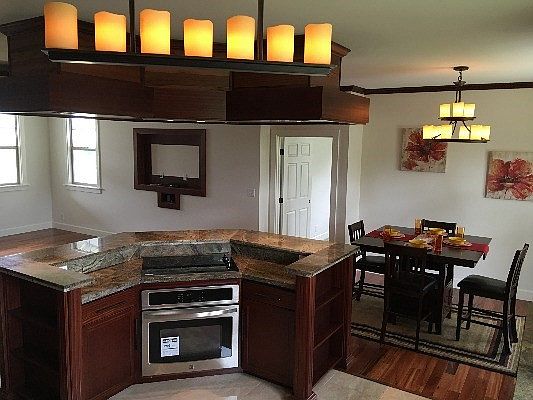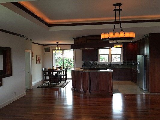 BRAND NEW!!! Partially furnished custom home tucked away in Lower Kaumana, minutes to stores, hospitals, schools (EB DeSilva School), and more. This home has an open floor plan of 1730 sf of living area, 9 foot ceilings throughout, 3 bedrooms, 2.5 baths, master having a Jacuzzi and double vanity sinks. Flooring consists of a Tigerwood Hardwood floor in Living/Dining room area, tile in kitchen, baths, and laundry, and cozy carpet in bedrooms. Beat the heat and cool off with air conditioners in every room (total of 4) and not be afraid of high Helco bills due to a PHOTOVOLTAIC (PV) System, and gas operated hot water system. Kitchen has built-in appliances with exotic Sapele wood cabinets and crown molding. Granite countertops throughout and a trey-ceiling in living room having rope lighting and dimable lights throughout to create the ambiance for the relaxing evening. The home is located in an older established neighborhood having very nice neighbors, and the convenience of amenities Hilo Town has to offer. Owner is contractor. Year built and number of bedrooms differ from Tax Record.