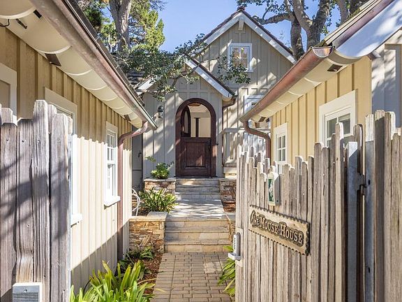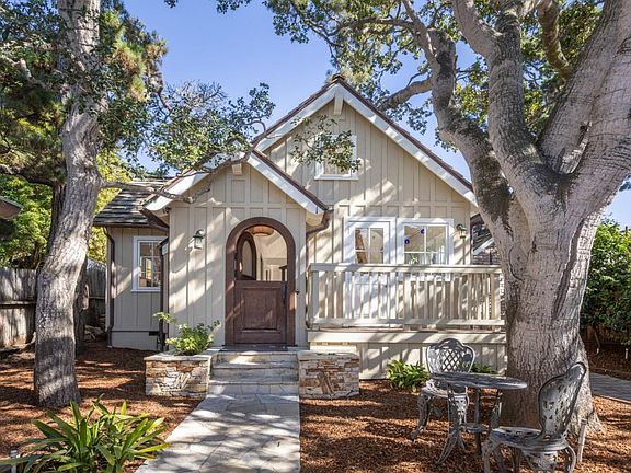 Welcome to the Mouse House, a charming cottage nestled in the heart of the Golden Rectangle of Carmel-by-the-Sea. This light-filled home features 2 bedrooms, 2 bathrooms, and an extra den that can serve as a cozy 3rd bedroom or office space. Featuring a soaring vaulted ceiling in the kitchen and living room which opens through French doors to a patio with outdoor kitchen area, complete with a built-in pizza oven. Sustainability meets convenience with a solar power system, a rainwater capture tank, and a one-car garage equipped with an EV charger. A separate detached studio adds flexibility for use as a creative space, home office or guest room. This coastal retreat is just minutes to the white sands of Carmel Beach and to restaurants and shopping in Downtown Carmel.