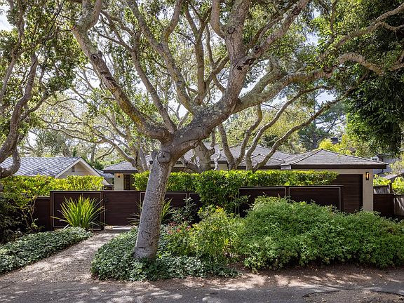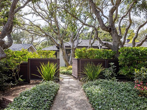 Nestled amongst the oaks in Carmel's coveted "Golden Rectangle" this masterpiece home sits just blocks from the beach and downtown. Spacious with almost 1,600 square feet, the home presents itself with modern clean lines, high ceilings, light and bright rooms accented by hardwood floors, and large full-length windows showcasing the outdoors. It is all pulled together by the spellbinding living room fireplace that serves as the main focus and the meeting point for all leisure home activities. With picturesque outdoor areas perfectly carved out for maximum privacy and enjoyment, and magazine vibes from exterior to interior; this home will command your attention and you will be more than willing to settle in.