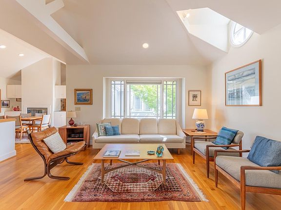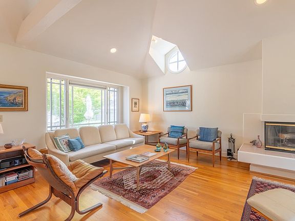 This custom home boasts a timeless and beautiful design with distinct spaces by renowned architect Alan Turpen. Interior features bullnose plaster walls, white oak floors, & easy-to-live floor plan. Living room is flooded with natural light & a wood-burning fireplace can be enjoyed from any angle. Kitchen showcases Downsview cabinets, high-end appliances-2023 Miele dishwasher and Bosch refrigerator, and a center island with sink. Dining area features 2-sided fireplace. French doors lead to a charming brick patio. Library is a cozy space to read or watch movies by the fireplace. Primary bedroom has ensuite bathroom & ample closet space. Two additional bedrooms or make one a home office. Durable and long-lasting cement tile roof tops stucco exterior embraced by sculptural oak tree. Utilities are underground, rare in Carmel. Located in a quiet location, a short distance to downtown Carmel over 4th St foot bridge & easy access to Carmel Beach. This home is move-in ready for its new owner.