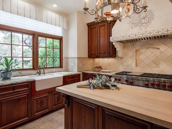 Tucked into a coveted corner of the Golden Rectangle, away from the commotion of downtown Carmel-by-the-Sea, but a short stroll to the white sands of Carmel Beach, this four bedroom home is perfect for a quiet get away or as a place for friends and family to gather around the outdoor fireplace, listening to the surf and sharing stories. A true chefs kitchen opens up to the living room and a south-facing deck that overlooks the private patio. The master suite features a sunny seating area, a cozy fireplace and a walk-in closet. Attention to detail and quality craftsmanship like hewn beams, hand-painted detailing and custom stone work extend throughout the three bedroom main house and into the one bedroom guest house with a kitchenette. This charming home is the complete package and is perfect for a full time residence or second home.