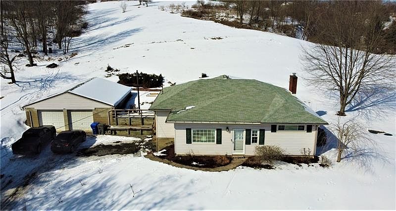 Privacy and space abound in this lovely 3BR ranch on two parcels totalling 1.9 acres. Great location between Cranberry and Zelienople with easy access to I79S and Rt.19. Oversized two-car detached garage, full-width back porch, large living room that steps down to newly remodeled family room, eat-in kitchen, updated bathroom, hardwood floors, finished gameroom/studio, plus huge walkout basement are just some of the great features. Other recent updates include brand new water treatment system, all brand new windows with transferable warranty, new carpet, yard drainage system, Everdry basement waterproofing with transferable warranty, newer septic, newer water heater, new chimney flue and cap, fresh interior paint, and new landscaping/steps.