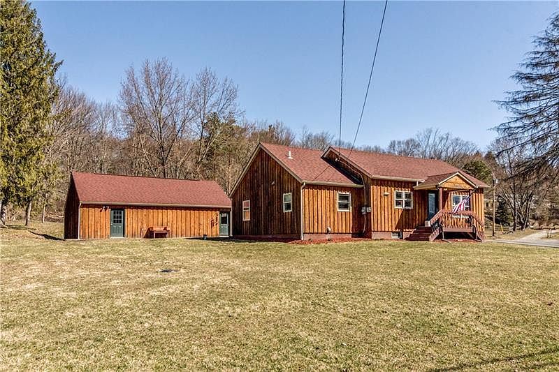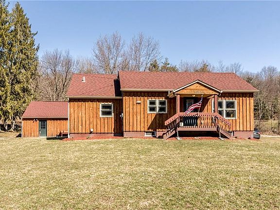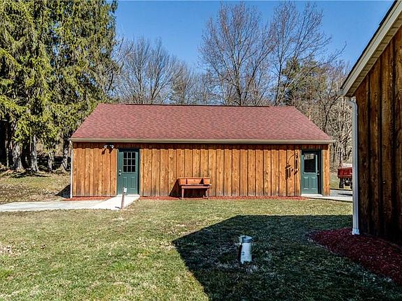 Original structure was removed and rebuilt with two additional sections. Hemlock on the exterior and pine on the interior. The lot is approximately 1.65 acres, detached garage is just under 1000 sq ft and has a loft for additional storage. Home is pristine, and what a great floor plan! Nicely sized bedrooms and baths, the kitchen has abundant storage and counter space. Impressive laundry. The loft is a bonus! Exterior walls are 12 inches thick on the main part of the house. Exterior wood is hemlock, interior is pine. The rear patio is lovely, and very private. Quite an impressive home!