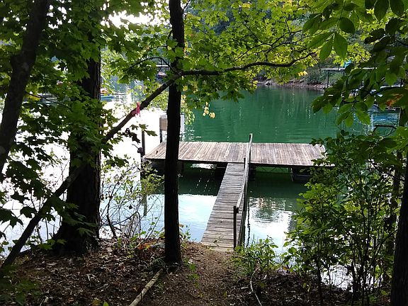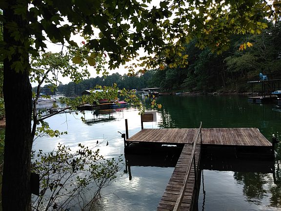 Lake front acre size lot on Lanier is wooded with slightly sloping terrain that has an ancient yet drive-able road to the private dock. A soil test is completed for septic tank, optional HOA available and is ready for a house to be built. Located on a quiet street in a cove across from Bald Ridge Marina Only 2.5 miles from GA Highway 400, exit 16 Pilgrim Mill Road.