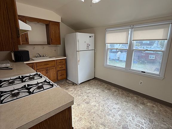 Great 2 bedroom room apartment with new wall to wall carpeting, eat in kitchen with refrigerator, dishwasher, freshly painted, reset lighting throughout, ceiling fans, central air conditioning, one off street parking, washer/dryer hook-ups, basement for storage and use of yard!