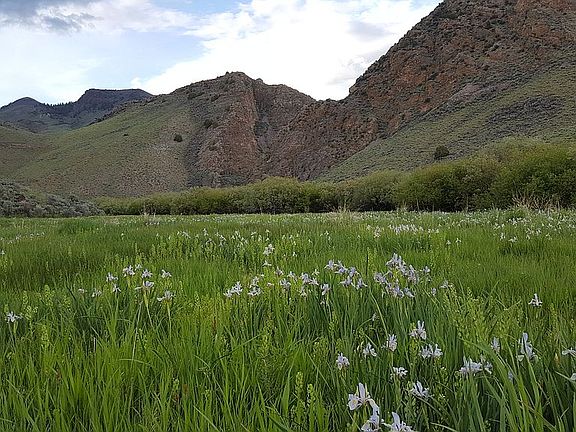 Quick stats: 760 acres, 72 acres flood irrigated, 2 miles creek, completely surrounded by federal land. This century-old Idaho Mountain ranch is located in the Salmon River Mountains northwest of Challis, Idaho. The remote 760 acre parcel is completely surrounded by BLM lands and is bisected by Little Hat Creek. Water rights from Little Hat irrigate 72 acres of hay and pasture. The creek runs for approximately 2 miles through the ranch. Woody cover is abundant along the creek, and several springs also contribute water. Because of the perennial nature of the creek, it holds a native trout population. Elk and deer are abundant and bighorn sheep and antelope are common ranch visitors. The wide riparian area with native currants and berries serves as a green magnet for numerous chukars, sage grouse and songbirds. Black bear and wolves are occasional visitors. A visit to the ranch any day of the year always brings a special gift. It may be hearing chukars chatter up the hillsides or a flock of sage grouse bursting with their brood from cover. It could be a new elk calf or maybe just the way the sunlight basks the golden hills. Little Hat Ranch always brings peace and quiet to the visitor. A conservation easement was placed on the ranch to ensure that the unique wildlife and scenic values would not be compromised in the future, while allowing the property to continue to be used for cattle ranching. The easement allows for a total of 4000 square feet in buildings (there is currently no structure on the parcel) and presents the owner with the choice of numerous attractive building zones. The remote nature of the ranch means that there is no place on the ranch where any other homes or ranches can be seen. Mountain views are abundant. The parcel is served by a BLM/USFS maintained improved gravel road that travels some 8 miles through scenic open BLM country to the ranch from the Salmon River. With only part-time residence landowners several miles further up the road, and miles of virtual wilderness beyond them, solitude and quiet is a given on this lovely private inholding in the heart of Idaho.