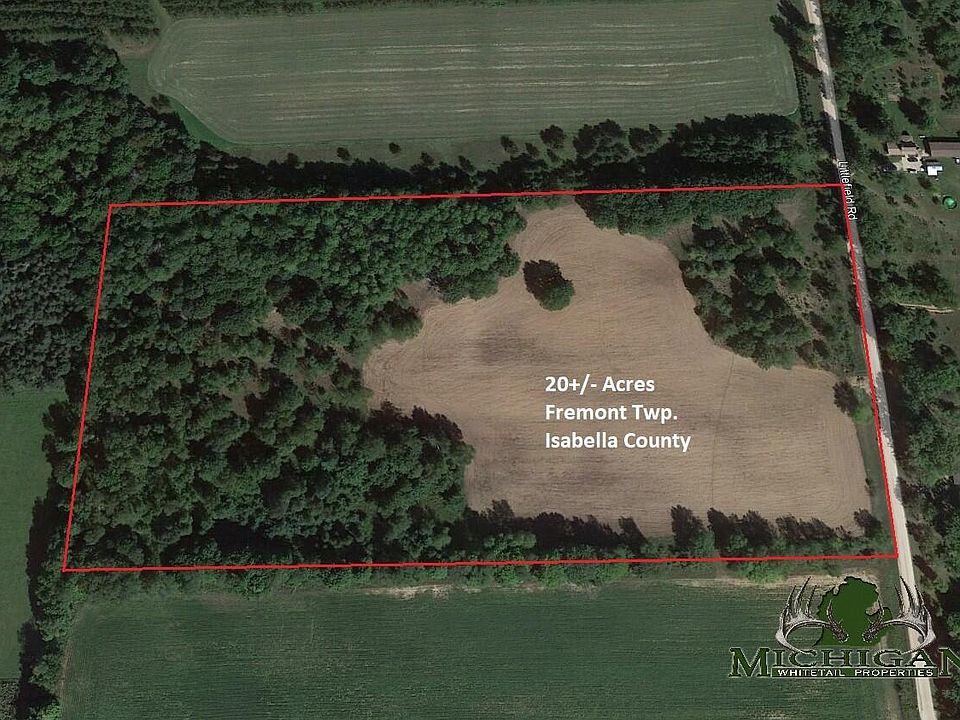 This recently split off 20 acres in Isabella County between Blanchard and Winn has a great mixture of woods, thick cover, open field area, nearby food source, and great possible build sites. There are oaks, maples, beech, and pine trees scattered both in the front and back portion of the property with approximately 7-8 acres of tillable ground in the center and southeast areas making this small parcel ideal for hunting and recreational activities. Larger agricultural fields mainly to the west and south and woods to the north and east result in making this property a natural travel route for the wildlife as they move from cover to searching for food. An approximate 1/8 mile of road frontage on Littlefield Road provides great access and the recently installed culvert and driveway.... allows you to pull right into the property! I noticed plenty of tracks, trails, and rubs while walking this parcel, so don't wait and give me a call today to schedule a showing!