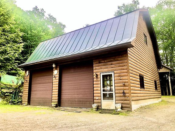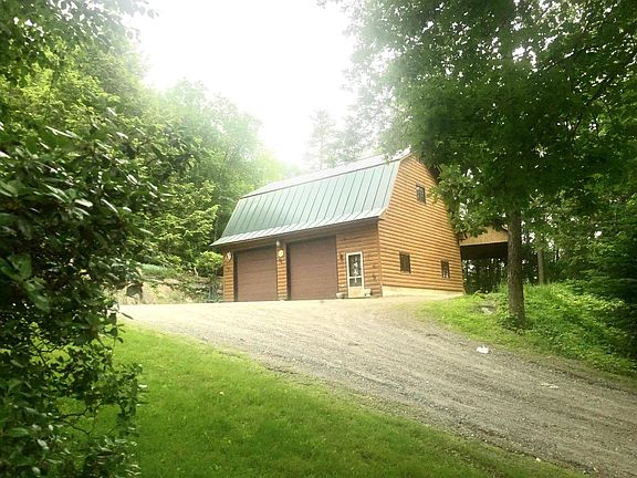 Lovely Log home 2020 Sq Ft living area features a covered porch situated on a secluded 18 Acres lot with a rambling yard. One level living. Living room , Dining area, kitchen and bedrooms with attractive wood beams. Dining area with a bay window and vaulted ceiling, spacious kitchen with plenty of cabinets, center island, pantry, washer and dryer 1st floor, electric heat with pellet stove situated between the living room and kitchen, master bedroom with whirlpool tub, room with a separate entrance to the house, large garage with high ceiling, door openers, wood stove and heater. Huge storage space above garage. Also has a huge pole/barn roof structure to park a massive RV. There is 4 parcels of land. Lot 25B, Lot 25C, Lot 26, Lot 19. Lot 19 borders Connecticut River requires staircase to access, but worth consideration to enjoy the river.