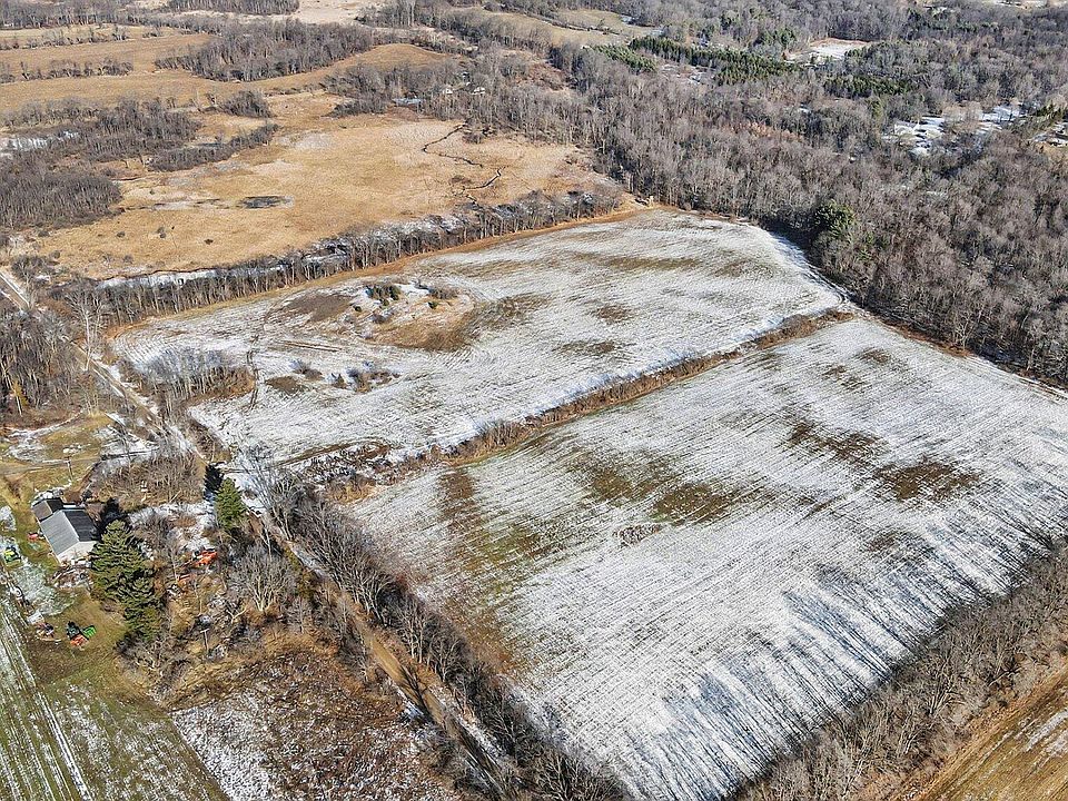 Augusta Creek cuts through the back of the property where the parcels connect to form a wildlife corridor. Acreage includes open slightly hilly areas with some trees and shrubs. Mature woodland connects with the acreage in the back, and wetlands are along the creek, supporting wildlife habitat. Two tillable fields are present on the acreage. Fields have been farmed using organic practices without conventional agricultural pesticides to promote healthy wildlife habitat and limit exposure to chemicals.