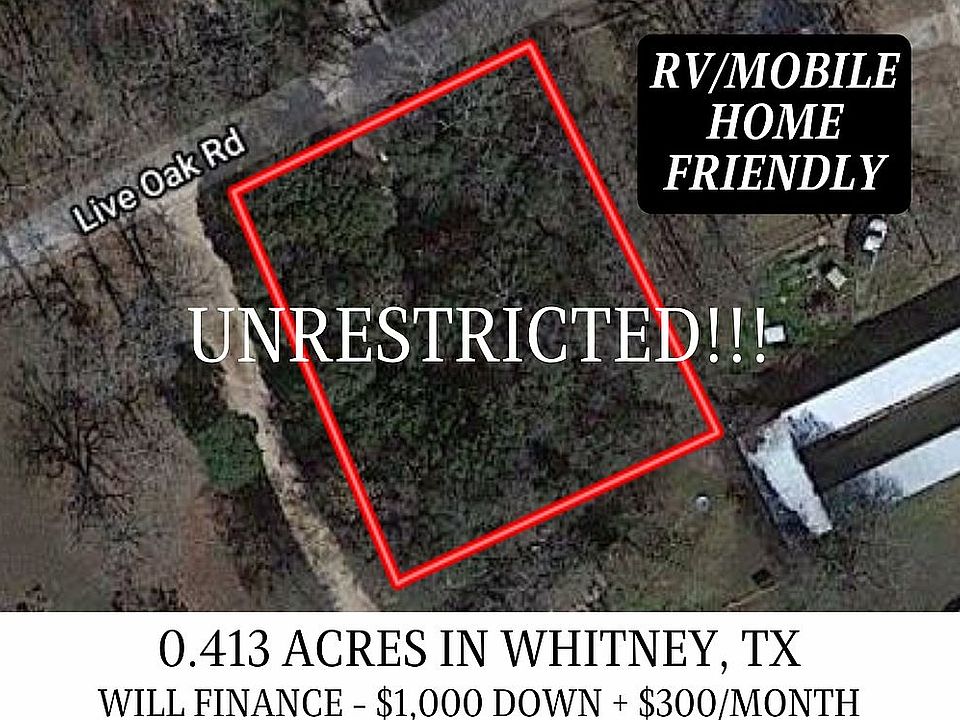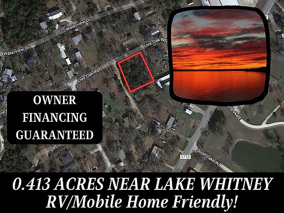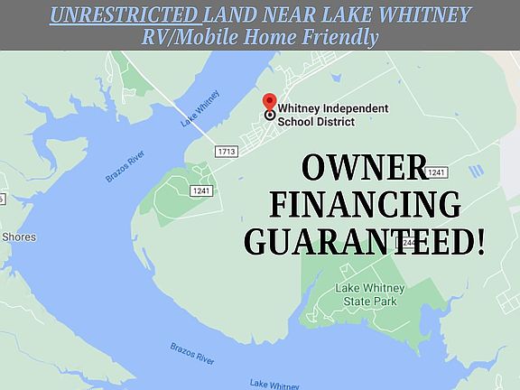 CALL/TEXT FOR MOST RAPID RESPONSE! 314-710-2007.... 0.413 Acres of RV/Mobile Home Friendly vacant land in Whitney/near Lake Whitney. This property is perfect for you if you want unrestricted property OR you want property close to the lake. $14,500 with just $1,000 Down + $300.30/month for 60 months. Agents - Bring us a cash offer - We Pay a 5% commission! --- Property Information --- Acres: 0.413 County: Hill State: TX Zip: 76692 GPS Coordinates: 31.958128, -97.382261 Utilities: Water and Electric Available.