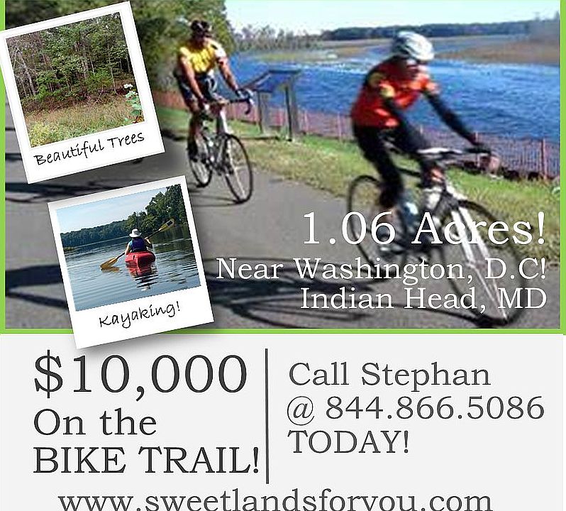 For more detailed information, please visit our www.sweetlandsforyou.com and/or contact info@db3landholdings.com or call 844.866.5086. Get on your bike and ride in beautiful Charles County! With the Indian Head bike trail along the property and the Mason Springs Conservancy Kayak Launch about a quarter mile away, this is the perfect property for those who love the outdoors. With protected land on three sides, you'll get lost in your own private oasis. This 1.06 acre parcel surrounded by mature trees is just off Livingston Rd, and is in close proximity to both the Potomac River and Mattawoman Creek. Land likely will not perc so it’s a great parcel to create your own off-grid treehouse or get away space for camping, gardening, or store your kayaks and bikes – you can hit the trail or the creek in minutes! Make the 45 minute drive for a quick escape from the chaos of capital and be back by nightfall. Explore fishing, camping, boating, biking, and kayaking at your leisure. This is a great opportunity to have a little bit of peace and tranquility to call your own! Property Summary This lovely 1.06+ acre lot with beautiful mature trees is just off of Livingston Rd and the Indian Head Rail Trail (IHRT). The property can be accessed by car from Livingston Rd. and by your favorite mode of human-powered transportation directly off the IHRT! The neighboring property to the East, which is a much smaller .63 acre lot, is currently FOR SALE for $40,000! We’re selling this lot for only $10,000! With the access to the bike trail, this property won’t last long. Call 844.866.5086 and talk to Stephan today! For a short video of the property, visit https://youtu.be/_U1n3DmZV0c For more detailed information, please visit our www.sweetlandsforyou.com and/or contact us with any questions you might have at info@db3landholdings.com or call 844.855.7529 or 844.866.5086. We look forward to chatting you!