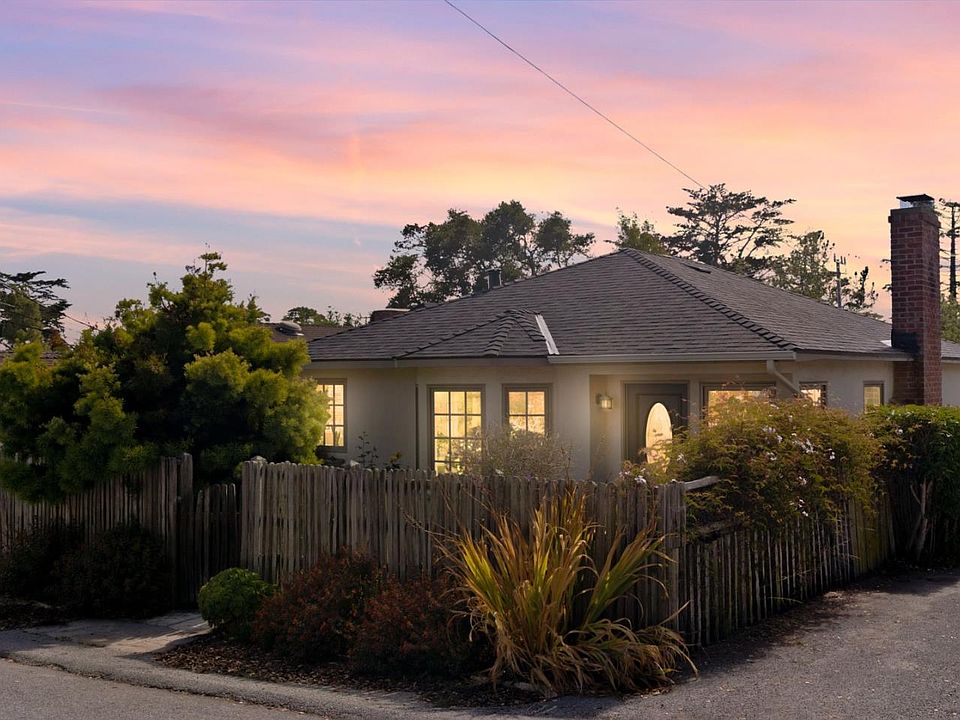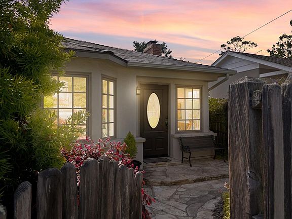 "This charming home is within walking distance of Carmel's shops and restaurants. There is a lush garden and flagstone walkway to the front door. The main house has 2 bedrooms and 2 bathrooms, living room, dining room and sparkling kitchen. The master bedroom is ensuite and has a deck leading to a private courtyard and where there is a bonus room that could be a bedroom or artist studio. The main house is approx 1,290 sq ft, and the detached bonus room is 325 sq ft. The main house has a stone fireplace, raised ceilings, an attractive bay window, hardwoods floors, luxe carpet, skylights, leased solar panels, and more. Enjoy your morning coffee on the back deck or patio and breath in the ocean air!"