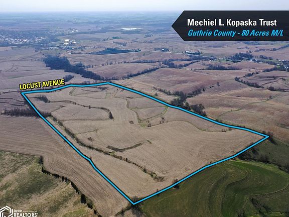 Guthrie County, Iowa Online-Only Auction - Mark your calendar for Thursday, May 22nd, 2025! I"m pleased to present 80 acres m/l situated just west of Guthrie Center, Iowa in Section 2 of Baker Township, Guthrie County, Iowa. The farmland tract includes 75.20 FSA cropland acres. Prominent soil types include Sharpsburg silty clay loam and Colo-Judson silty clay loam, with an average CSR2 soil rating of 65.8. The cropland acres are certified as Highly Erodible Land (HEL). The farm is leased for the 2025 growing season, the Buyer will assume the current cash rent lease and receive the payment from the Farm Tenant payable on December 1st, 2025. The estimated rent credit is $16,920 ($225/FSA-certified cropland acre). Drainage tile intakes are located throughout the tract, indicating there is tile on the farm. Access is from Locust Avenue, the farm is half a mile north of paved Highway 44 with several competing grain markets. **Please note, Summit Carbon has made an offer to purchase an option for an easement to construct their CO2 transfer pipeline. The pipeline would be located on the southwest corner of the property. No offer has been accepted by the Seller but the Winning Bidder/Buyer should be aware of the opportunity. See Attachments for an aerial showing the location of the proposed pipeline. Please Contact the listing agent for more details** Visit our website for more information regarding this TIMED ONLINE-ONLY Auction.