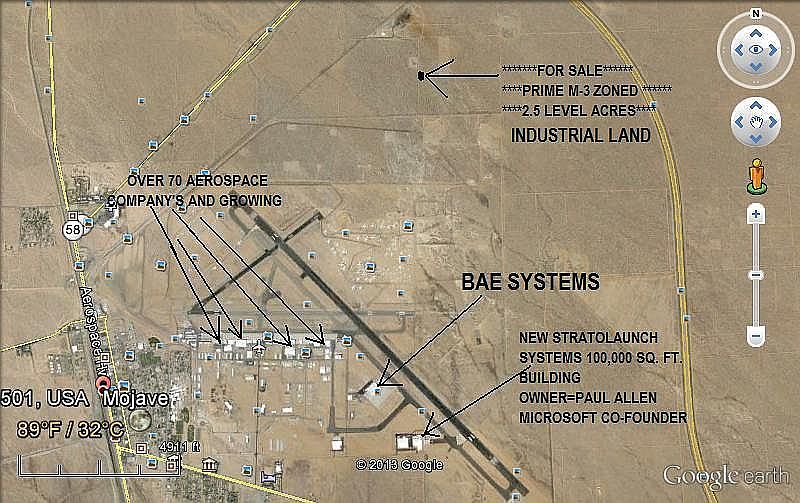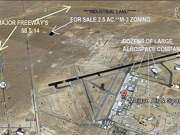 ***BOOMING MOJAVE AIRPORT/SPACEPORT RARE M-3 ZONED HEAVY INDUSTRIAL 2.5 LEVEL ACRES, JUST 1500 FEET FROM AIRPORT RUNWAY!! CALIFORNIA CITY JUST 3 MILES NORTH APPROVED MARIJUANA GROWING ON INDUSTRIAL ZONED LAND WITH PERMITS!! CAN MOJVE BE NEXT??? LAND PRICES TEN FOLDED ONCE APPROVED IN CAL. CITY !!! ***PRICED TO SELL FAST AT $11,900--------------CALL 661-251-1051