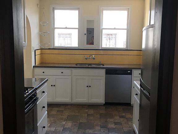 If you are looking for a character home to rent with charm you've found it. This is one of the few original 1932 homes left in West Los Angeles. This charming house has been lovingly maintained with it's original doors and fixtures in tact. A beautiful porch entrance welcomes you into a quaint entryway. Off of the entryway is a large living room and fireplace with a large picture window overlooking the one block on Bentley Avenue between La Grange and Missouri with single family homes. Off of the living room is a spacious dining room with 2 windows. There are two bedrooms with windows, and closets at the end of a short hallway that has linen closet. The large bathroom has original tile work, bathtub, a separate shower and a vintage 1930's style vanity. Off of the dining room is a fully appointed kitchen with upgraded granite countertops and spacious cabinets that leads to a service porch with a washer and dryer and storage closet. There is also a cozy breakfast nook off of the kitchen at the front of the house. A driveway leads to a two car garage in a beautifully well-maintained private backyard.