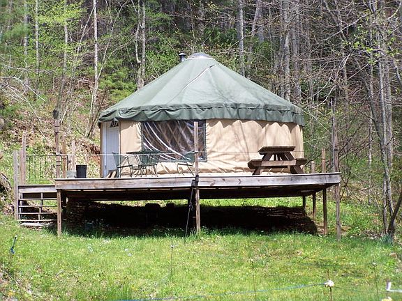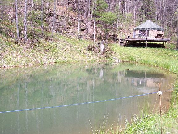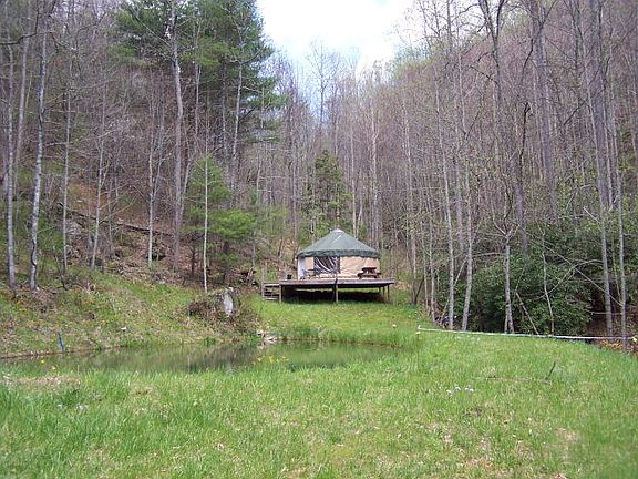 Larger land tract (37+ acres) with year round creek, spring fed pond and year round crisp cold running spring water to enjoy directly from the spring head conveniently set up with its own piped system. Very private, secluded, mostly wooded w/nice trails & roads throughout. Buildable, no restrictions, completely surveyed. Land has nice views at the top along with building sites terraced on this pretty land. The pond remains a focal point as you drive up and sits just below the livable yurt w/deck overlooking the creek, spring, pond & woods loaded w/rhododendron where the deer & turkey are clearly making this their habitat. The yurt is included and is livable in all 4 seasons w/wood stove for heat. There is no well/septic nor power yet, but buyers can decide where they want to build and then determine the location for their utilities which are available at the road. There is also a storage shed as you enter the private gated driveway for all your mountain toys to be stored.