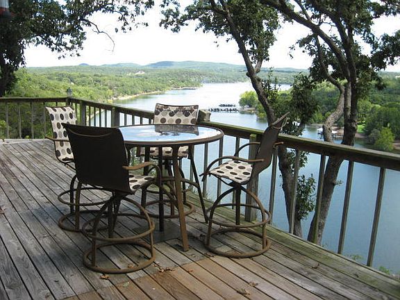 Awesome views from this house with Mountains in the background. Sitting high on a bluff you can watch boater's on Table Rock Lake. Lot's of decking to enjoy the lake with a boat slip included in price just a golf cart ride away. This home has 2 bd 2 ba and sits on two lots and a hot tub on the deck to enjoy the lake. A great vacation home with all furniture negotiable.