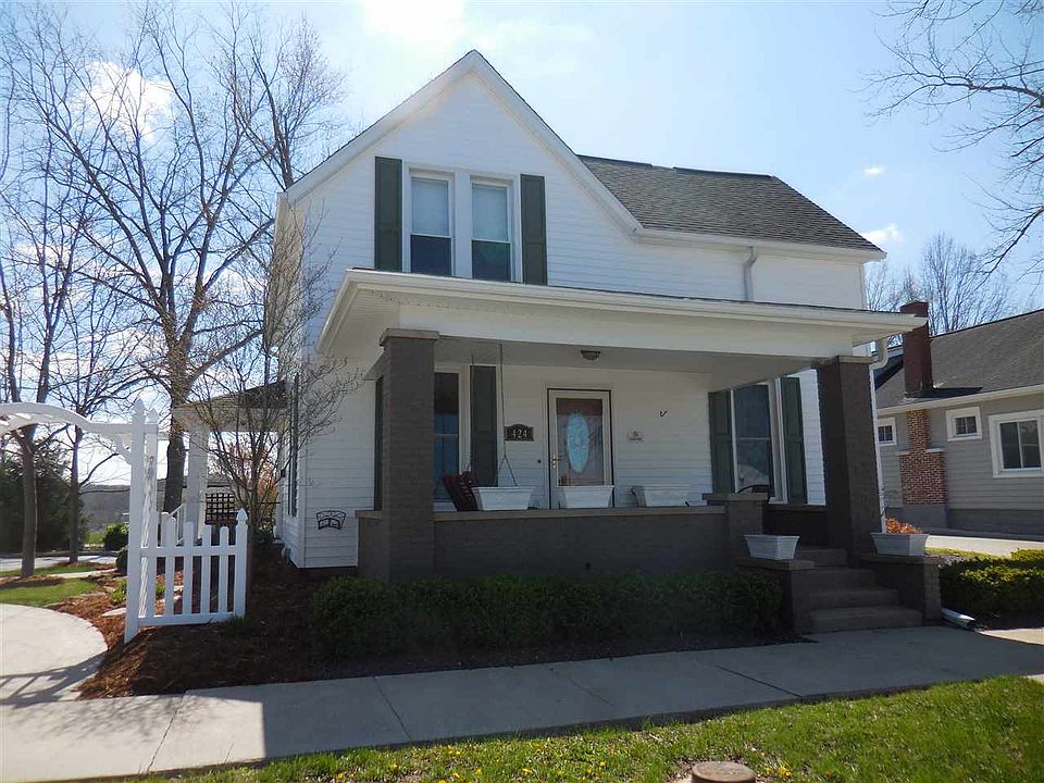Gorgeous home formerly known as the Tranquil Inn and Spa in Shoals was successfully ran as a bed and breakfast. This completely renovated, beautiful home is being offered as a residential property. From the commercial grade custom kitchen, to the formal dining room with original walnut - wide plank and peg flooring, the attention to detail through out the home is amazing! The main house has two/three bedrooms upstairs, 2 full luxury baths and way too many extras to list. This home sits on 4 lots, has a covered front porch, a sun room, partial finished basement, a large concrete parking lot, professionally landscaped with a gazebo, a guest house with two apartments and a two car garage. This property has plenty of room for rental or bed and breakfast options!