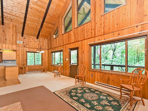 Looking for that special mountain home feel in the Poconos? Then this property will surely check off all the boxes. Solid post and beam construction. Nestled on almost 4 acres in the mountains this property will sure provide the privacy that is most desired. Upon entering the home you will be greeted by a great room w/ a cabin feel featuring cathedral ceilings, exposed beams, and a wood burning fireplace set in stone. 2 Bedrooms and full bath complete the 1st level. Upstairs you will find a loft space w/ storage and a Master Bedroom suite w/ full bath. Full basement which is great for storage or can easily be finished for additional living space. Large covered deck perfect for entertaining or just relaxing. Completing this property is a 1 car built in garage. NO HOA FEE AND LOW TAXES!