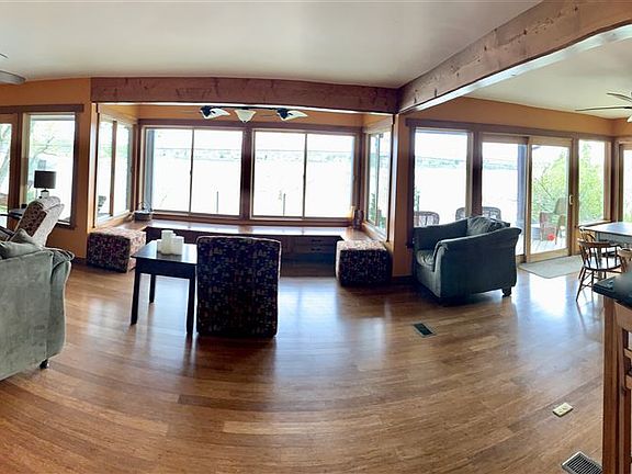 RIVER FRONT- Beautifully remodelled 2 story home in Rabbit Hash near the General Store. This awesome home features a wall of glass on both levels allowing breath taking views of the Ohio River and the Rising Sun Pavillion. Upgrades include Geothermal heat, updated electric and plumbing, custom amish cabinets, central vac, engineered hardwood throughout, ceramic tile, and a completely functional covered outdoor kitchen and entertaining area w/ stamped concrete floor, concrete countertop, 65 inch TV, viking grill, Hibachi grill & smoker. Huge 2 story barn and boat storage barn w/ electric.