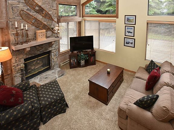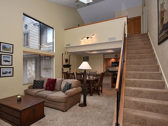 Extremely well maintained and updated townhome located in desirable ski in/out SunRidge community. Lots of natural sunlight through many windows and skylights. The kitchen has been updated with granite and newer appliances, refrigerator in 2014, and the tray ceiling offers extra height. Cathedral ceiling in living room with clean gas fireplace. There is a first floor master bedroom and all baths have been updated, including the powder room on the main level. New storm door in 2012 leads to the patio for shaded outdoor living.