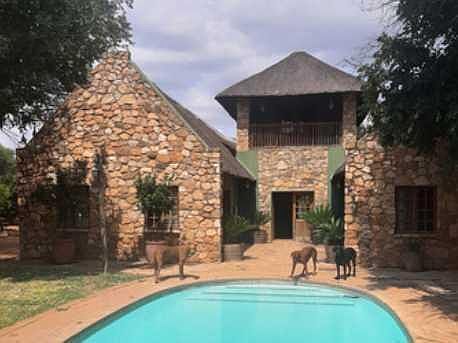 This South Africa game farm can be your personal African Safari Ranch or you could run an African Safari business from this ranch. This beautiful 1803 HA (4,455 acres) game farm is situated approximately 430 kilometers from Pretoria near Maasstroom. The topography is mainly flat and the habitat is typical sweet bushveld with a large variety of trees including knob thorn, leadwood, baobab etc. During the seasons with good rainfall, a small spring feeds water to the earthen dam. There are various improvements including the main lodge and a hunters camp with ten different game species including sable antelope. The farm borders a dirt road and not any tar roads and is completely game fenced. There is a good network of roads, which covers the entire farm and escom power. Here is a great opportunity to own a large piece of the African bushveld at a give away price. The game lodge consists of three spacious ground floor bedrooms (of which two are air-conditioned) with en-suite bathrooms, a small children's bedroom adjacent to one of the other bedrooms, one very spacious second floor bedroom with an en-suite bathroom (this is the only room on the second floor and can be accessed via steps running up to a balcony from the outside, it also has a second balcony), an office with an en-suite bathroom, one small bedroom on the mezzanine floor to the office, a semi open-plan kitchen with a separate pantry and scullery, a dining room, a large living room, and a store room. The thatched Lapa is equipped with a bar counter, an enormous twelve seat sleeper table, four ceiling fans, and an adjacent outside bathroom. The Lapa is directly next to the swimming pool and braai area. The chalets have two en-suite bedrooms each with a spacious living room. The outbuildings include a laundry, a workshop, a butchery, and slaughter facilities. The hunter's camp consists of two bedrooms, each with en-suite bathrooms, a spacious living area with a kitchen and dining area, and a large Lapa under a knob-thorn tree with a braai area and elevated fire place. The staff quarters consists of seven separate bedrooms and two bathrooms. The borehole is equipped with a submersible pump and there is a second borehole which is not equipped. There are three cement dams situated strategically on the farm of which one is situated near the borehole. The following game is included and estimated numbers are shown: 200 Impala 70 Blue Wildebeest 50 Kudu 40 Gemsbok 30 Waterbuck 20 Giraffe 14 Zebra 10 Nyala 9 Sable Antelope 5 Eland Various free roaming game can be frequently spotted including Baboon, Black-backed Jackal, Brown Hyena, Bushbuck, Bushpig, Caracal, Common Duiker, Leopard, Serval, Steenbok and Warthog. Tree life is absolutely stunning with some of the following trees: Baobab (Kremetart), Brandy Bush (Rosyntjiebos), Buffalo Thorn (Blinkblaar-wag-\'n-bietjie), Knob Thorn (Knoppiesdoring), Leadwood (Hardekool), Marula (Maroela), Red Bushwillow (Rooibos), Shepherd's Tree(Witgat), Sickle Bush (Sekelbos), and Umbrella Thorn (Haak-en-Steek). Listing provided by: Africa Game Farms