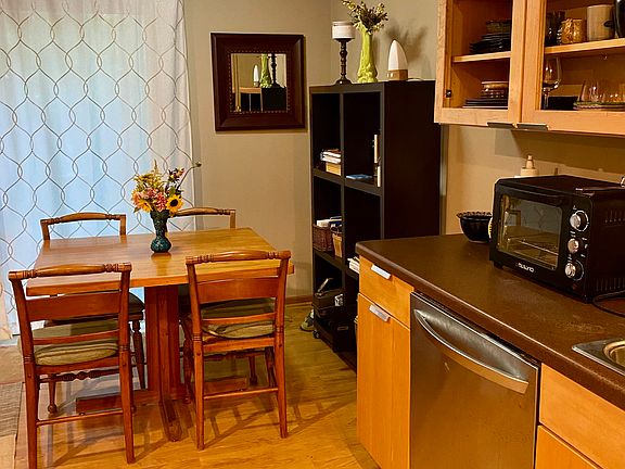 Furnished Room for rent with en-suite bathroom on westside location of Madison, bordering Middleton, easily accessible to downtown and beltline. Updated kitchen, lots of natural light, little balcony and patio in backyard. AC, ceiling fans in bedrooms Washer/dryer in basement Shared living room and full kitchen Must like dogs owner has a chill chocolate lab. Furnished. Owner pays water & sewer. Renter pays gas & electric. Owner stores personal items in basement. No food allowed upstairs since brand new carpet installed. Lease is flexible.