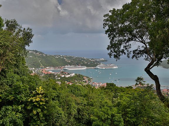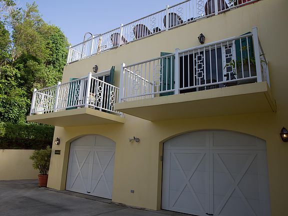 SOPHISTICATED ELEGANCE! A community of 4 distinctive multi-level villas with views of Megans Bay & Harbor/Town! OWN or LEASE this #4 CORNER with the most privacy & parking in Mafolie Villas. One of the few villas on island with private elevator. Mafolie Villa #4 is totally furnished 4 BR - 5.5 Bath (4400 sq. ft 6600 total). His/Her walk in closet, patios from ea. room with tropical breezes. SECURE- double gated, alarm &camera system, wi-fi & high speed internet, custom finishes, professionally decorated, 2 port car garage- app to open & close - anywhere - has alerts, automatic generator. SOLAR power & LED lights, central air, separate zoning, 3 new split A/Cs. private cistern (25K) - low alerts, gazebo, pool- grills, extra refrigerators, wine coolers, Hurricane windows, Wood Shutter