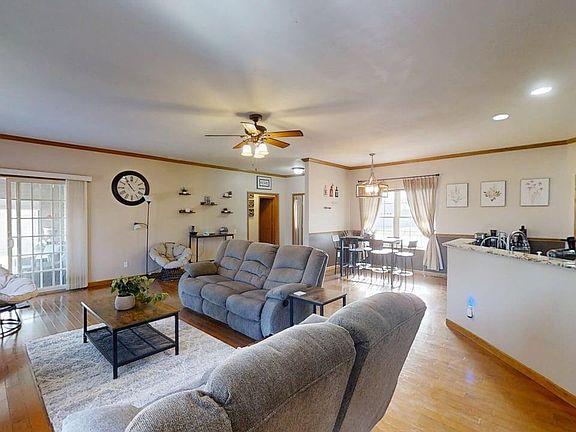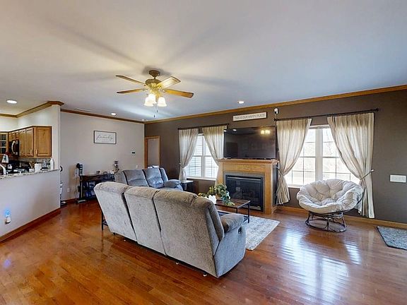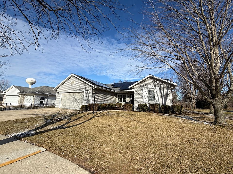 Picture-perfect curb appeal and serene water views awaits in Mahomet's sought-after Sandy Ridge subdivision! This beautifully finished 3 bedroom, 2 bath ranch offers the ideal blend of style, comfort, and functionality. The spacious open-concept living room features 9 foot ceilings, rich hardwood floors, abundant natural light, and a cozy fireplace, all flowing seamlessly into a relaxing sunroom with both heat and air - perfect for year-round enjoyment. The large kitchen and dining area is ideal for entertaining, showcasing stainless steel appliances, warm oak cabinetry, granite countertops, a center island, and a generous pantry for excellent storage. The desirable split-bedroom floor plan provides privacy, with a bright and airy primary suite offering a private bath complete with double sinks, a jetted tub, a beautifully tiled shower, and a walk-in closet. Two additional bedrooms feature great natural light and ample closet space and share a full hall bath. A convenient utility room with laundry sink adds everyday ease. Outside, enjoy summer cookouts on the patio, relax in the spacious shaded yard, or take a short stroll to the neighborhood pond for a little fishing. This move-in-ready home truly has it all - don't miss your chance to make it yours!