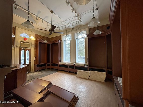 The MOST iconic building on Main St In Stockbridge is now offering the Front Condo for sale or rent! Have your business downstairs and live above.Original Stockbridge Town Hall building.Incredible foot traffic all year round. This three floor condo is ready to transform into whatever it is you desire. Soaring 12 foot ceiling height, exposed brick throughout. giant windows facing Main st. Upstairs has full bath and was once used as a studio apartment! Basement has dry storage. Available for sale or rent.This is the FRONT condo ONLY.