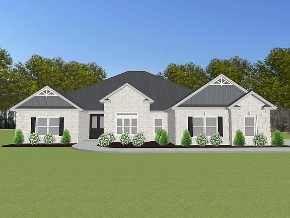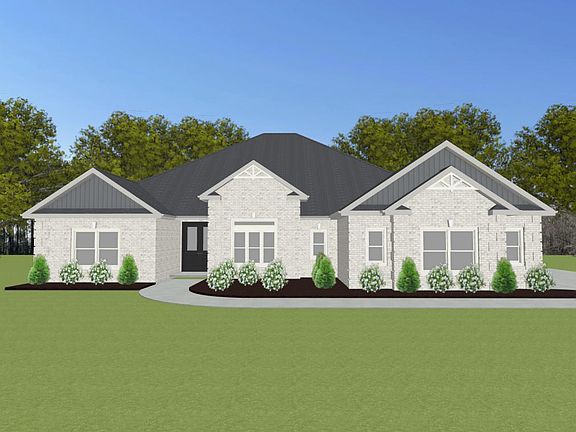 All brick Cambridge Plan D is an open plan with a 3 car side entry garage backed by a 2-10 home warranty.. Home has 4 bedrooms, 3 baths and a sunroom. Home has wood plus flooring (Mohawk Revwood, Engineered Hardwood, or similar product) in all living areas and bedrooms. Great Room features 12' ceiling, 8' tall doorways, extensive trim, gas-log fireplace with upgraded fireplace treatment, floor outlet, recessed lights and ceiling fan. Dining room has 12' coffered ceiling, 8' tall doorway, extensive trim including shadow box under chair rail. Open Kitchen includes 12' ceiling, soft close custom cabinetry and granite countertops, large island with countertop seating, second prep island, stainless appliances (Gas Cooktop, Cabinet Vent Hood, Wall Oven, Wall Microwave, Dishwasher), tile backsplash, recessed and under cabinet lighting, huge walk-in pantry, and drop zone bench. Breakfast has 12' ceiling and extensive trim. Master bedroom has 11' double tray ceiling, recessed lighting, extensive trim and ceiling fan. Master bath has 11' ceilings, freestanding tub, large corner tile shower with two shower heads and rimless door, separate toilet area, large double vanity with granite, huge walk-in closet and access to laundry. Large sunroom has vaulted ceiling and ceiling fan. The additional bedrooms have 9' ceilings, ceiling fans, and crown molding. The additional baths have 9' ceilings, tile flooring and granite counter tops. Laundry has 9' ceilings, custom cabinet and tile flooring.