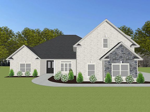 All brick Durham Plan B is an open plan with a 3-car side entry garage backed by a 2-10 home warranty.. Home has 4 bedrooms, 3 baths, and huge upstairs bonus room. Home has wood plus flooring (Mohawk Revwood, Engineered Hardwood or similar product) in all living areas and bedrooms. Great Room features 12' ceiling, 8' tall doorways, extensive trim, gas-log fireplace with upgraded fireplace treatment, floor outlet, recessed lights and ceiling fan. Dining room has 12' coffered ceiling, extensive trim including shadow box under chair rail. Open Kitchen includes 12' ceiling, 8' tall doorways, soft close custom cabinetry with granite countertops, large island with extra storage and countertop seating, stainless appliances (Gas Cooktop, Cabinet Vent Hood, Wall Oven, Wall Microwave, Dishwasher), tile backsplash, recessed and under cabinet lighting, large walk-in pantry and drop zone bench. Breakfast has 12' ceiling. Master bedroom has 11' double tray ceiling, recessed lighting, extensive trim and ceiling fan. Master bath has 11' ceilings, freestanding tub, large tile shower with tile bottom, two shower heads and rimless shower door, separate toilet area, large double vanity with granite and huge walk-in closet. The additional bedrooms have 9' ceilings, ceiling fans, and crown molding. The two additional downstairs baths have 9' ceilings, tile flooring and granite counter tops. The home has hardwood stairs leading to the second story bonus and bath. The additional bonus room has a cei