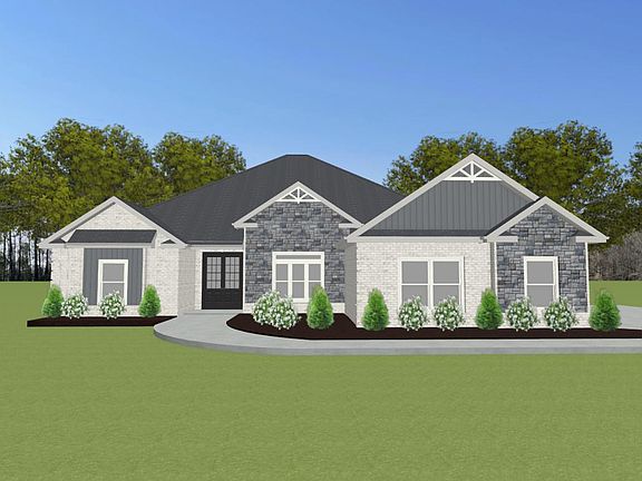 All brick Williamson Plan A is an open plan with a 3 car side entry garage backed by a 2-10 home warranty.. Home has 4 bedrooms, 3 baths. Home has wood plus flooring (Mohawk Revwood, Engineered Hardwood or similar product) in all living areas and bedrooms. Great Room features 12' ceiling with 8' doorways, extensive trim, gas-log fireplace with upgraded fireplace treatment, floor outlet, recessed lights and ceiling fan. Dining room has 12' coffered ceiling with 8' doorways, extensive trim including shadow box under chair rail. Kitchen includes 12' ceiling with 8' doorways, soft close custom cabinetry and granite counter tops, large island with extra storage and countertop seating, stainless appliances (Gas Cooktop, Cabinet Vent Hood, Wall Oven, Wall Microwave, Dishwasher), tile backsplash, recessed and under cabient lighting, and huge walk-in pantry. Breakfast has 12' ceiling. Master bedroom has 11' double tray ceiling, recessed lighting, extensive trim and ceiling fan. Master bath has 11' ceilings, glamour tub, large tile shower with two shower heads and rimless shower door, separate toilet area, double vanity with granite countertops and large walk-in closet. The additional bedrooms have 9' ceilings, ceiling fans and crown molding. The additional baths have 9' ceilings, tile flooring and granite counter tops. Laundry has 9' ceiling, custom cabinet, and tile flooring. Dropzone bench by door to garage. Home has large rear covered porch with ceiling fan as well as additional co