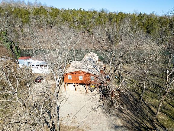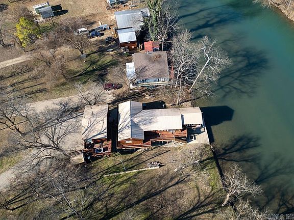 Spring River frontage on approx. 0.4 acres, located midway between Hardy, AR and Mammoth Spring, AR. Property includes two living structures connected by extensive decking. Main house offers 1,484 sq ft with 3 bedrooms and 2 full baths, open kitchen/living area, and eastern red cedar interior walls. Separate 680 sq ft master suite includes 1 bedroom and 1 full bath. Total of 4 bedrooms and 3 full baths. Outdoor features include a 300 sq ft covered porch, approx. 1,250 sq ft wrap-around wood deck, sun deck on the riverbank, and outbuilding for storage. Spring River is known for trout, bass, walleye, and catfish, and supports abundant wildlife including eagles, herons, ducks, beavers, and otters. Consistent spring-fed flow with frequent morning fog.