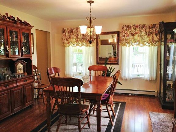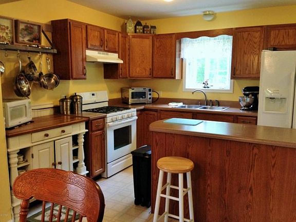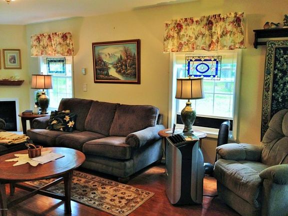 A long driveway leads to this charming Colonial home privately set on three cleared acres. This home has 4 bedrooms, 2.5 bathrooms with a spacious floor plan. The home has decorative laminate floors with lots of windows making it light and bright. A country styled eat-in kitchen is equipped with a large center island and pantry and opens into a formal dining room. The extra large living room has a gas fireplace. A front porch and deck overlook lovely gardens and a grove of white birch trees.