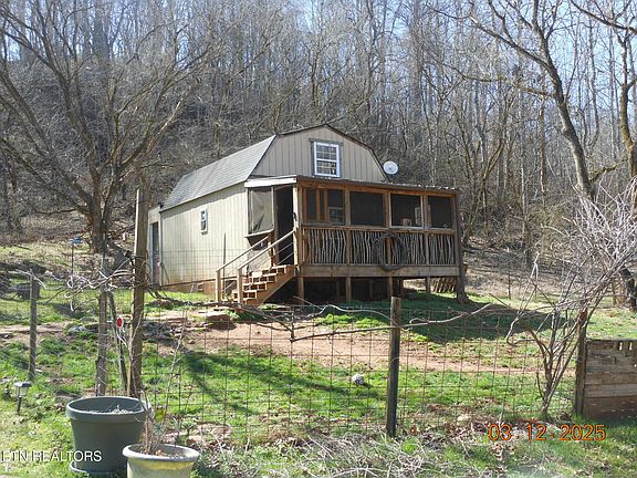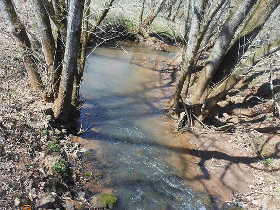 Unique rustic cabin perched on a wooded slope overlooks beautiful pasture land with year round Floyds Creek running from one side of the property to the other w/ a concrete bridge already in place. AN ANIMAL LOVER'S PARADISE, this peaceful, private unrestricted acreage includes a hay barn and a motor home pad w/ 50 amp wiring plus a large chicken coop.