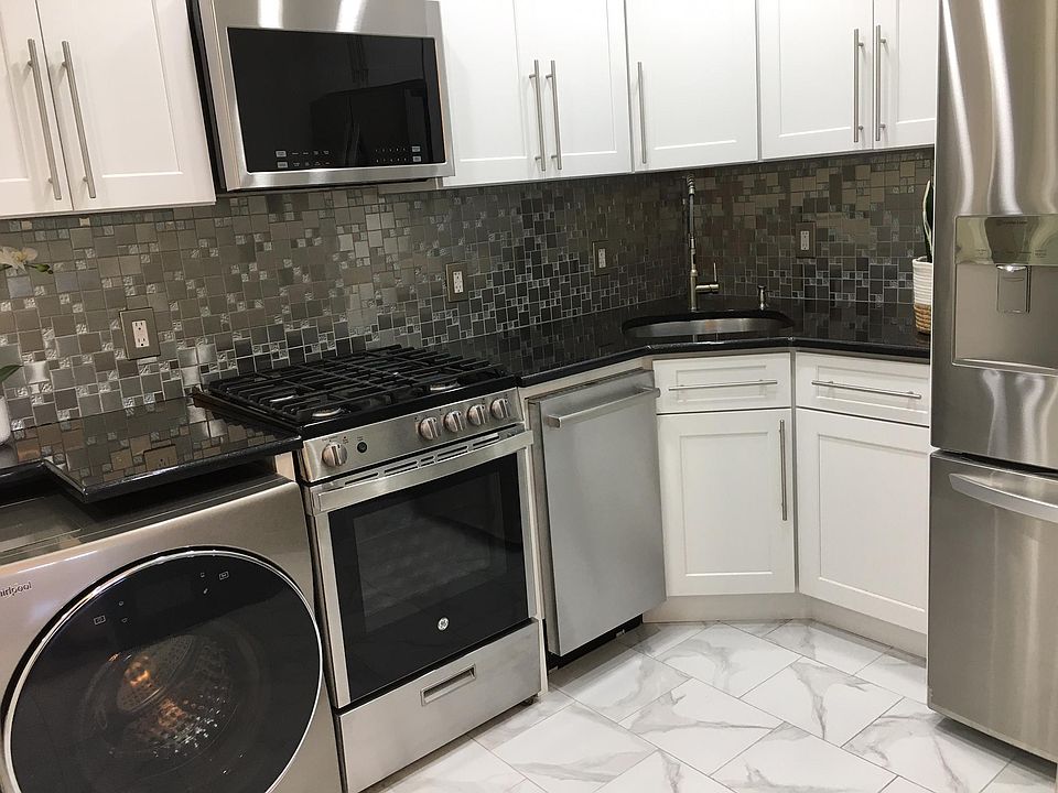 2 bedroom apartment in Middle Village /Maspeth area for rent , Completely renovated , with washer and dryer combo , custom made kitchen cabinets , stainless steal appliances, and dinning area. The apartment holds 2 huge walk in closet and 2 other closets. A spacious living room , 2 large bedrooms, modern bathroom with heated towel rack, wood floor throughout , LED lights, Split unit AC . Fenced and private backyard for private use.