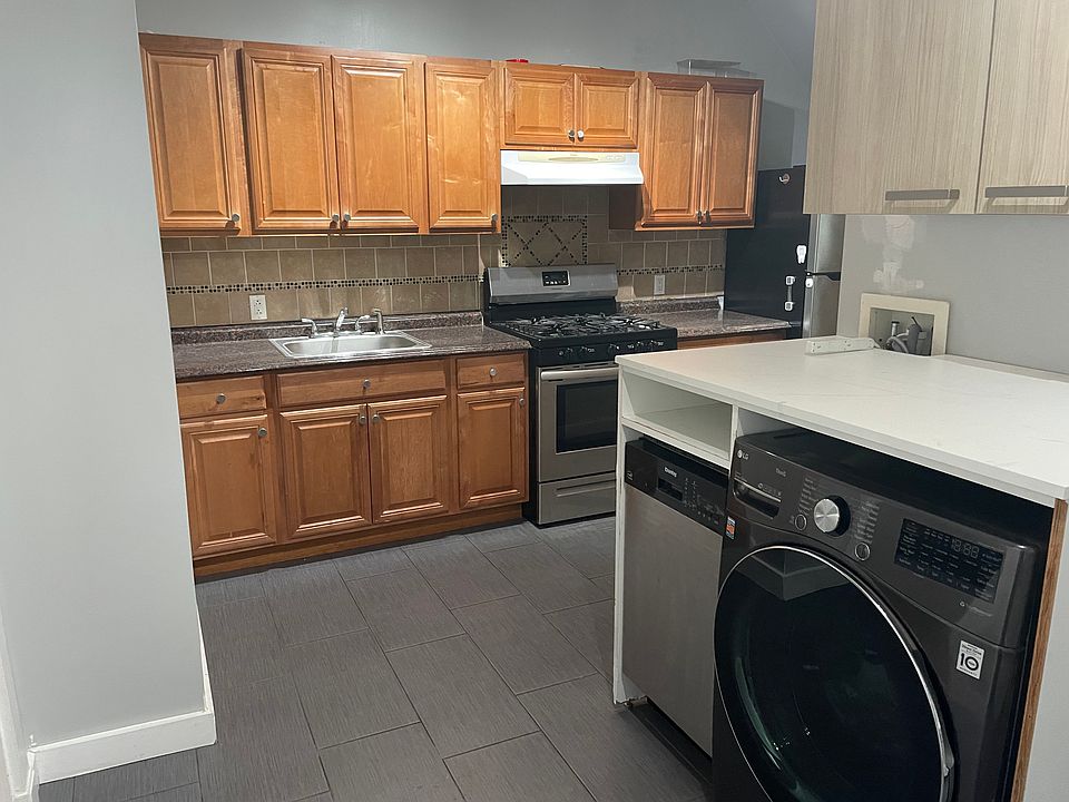 First floor duplex. This bright and sunny apartment features three bedrooms, two full baths. All hardwood floors. Backyard with storage. first floor has two bedrooms, one bath with stainless appliances and washer and dryer. Lower level consists of three rooms full bath with a separate entrance. This is a great place for someone who needs mom and dad to live with them. Tenant is responsible for Cooking, gas and electric. No pets.