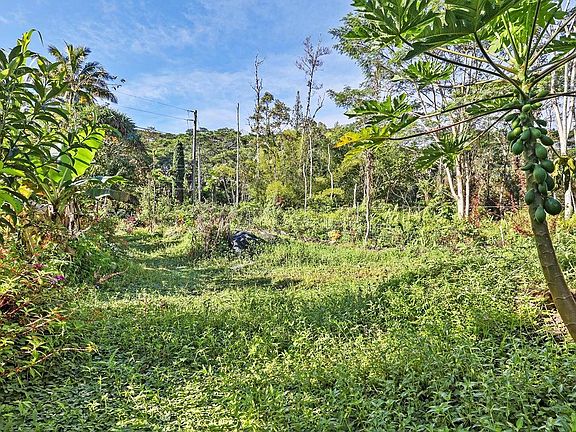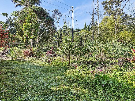Beautifully landscaped, this lot is truly special! Tucked away in a quiet corner of the Nanawale subdivision, you'll feel like you're entering a tropical garden where flowers, plants, food, herbs and native medicines grow abundantly.
