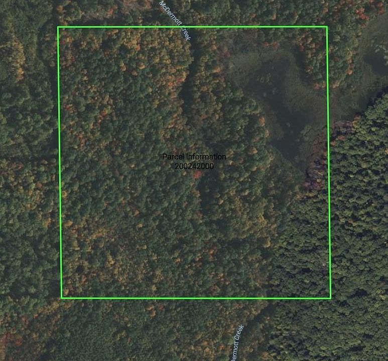 40 acres for the hunting enthusiasts. Borders public county forfeited land to the south and McDermott Creek runs through the property. Deer, bear, waterfowl, grouse, turkey, and small game. Basecamp is setup with a shed for storage.