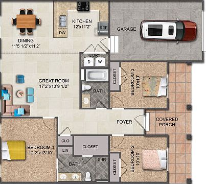 This 3 bedroom and 2 bath home has 1,271 sf finished with a 272 sf 1 car garage. Available on Lots 1, 76, 81, 92 and 121 it can be customized with a variety of finishes to suit any home buyers' needs. Please contact us to discuss any requested changes.