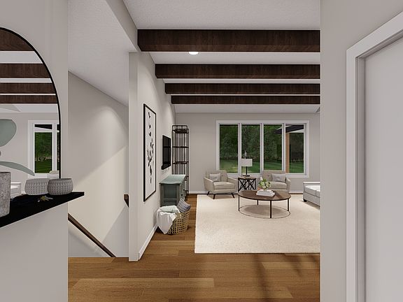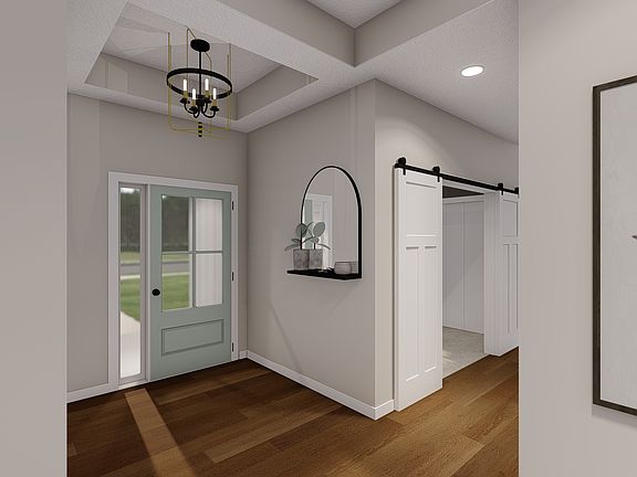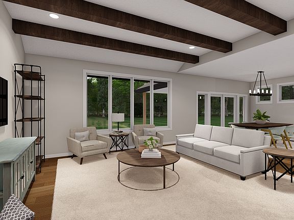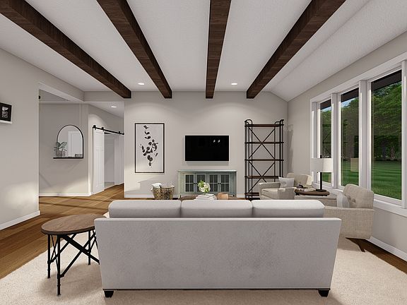 Incredible 5 bedroom spacious Modern Ranch. Spectacular overall finishes you won't know which to fall in love with first- is it the gorgeous interior with abundant light, subtle gray undertones throughout, drop zone conveniently located next to the laundry area, custom trim details and barn doors, or a kitchen featuring quartz, beautiful cabinetry & an oversized kitchen island? The covered patio off the kitchen area has a great view looking onto expansive lot. Basement features the 4th & 5th bedrooms w/ full bath.