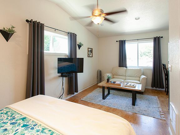 This is a very comfortable and home like experience in a quiet, residential neighborhood that is close to downtown and the I-5. It is a very well planned out upstairs unit with 410 sq ft that takes advantage of the space and feels much larger than what it is. From the very nicely equipped kitchen that can accommodate cooking most any meal (with spices, herbs, Keurig coffee, Ninja coffee machine, tea, sugar and creamers) to the full sized bathroom with a Jacuzzi tub you will be pleased. Then there is the walk in closet with a washer and dryer that includes detergents. Includes all utilities, wifi and Spectrum cable. Roku TV so you can stream your services.