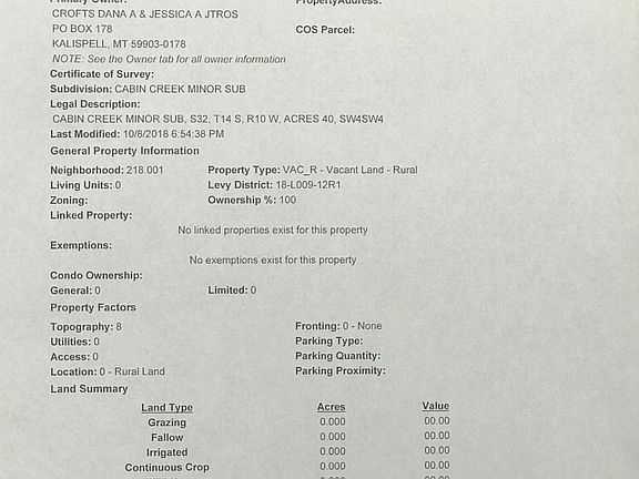 40 Acres of Prime Hunting & Fishing Property. A creek flows through the property called Cabin Creek and Government Property Borders the North and South. This Property has outstanding views and bordered by public hunting, fishing, hiking and ATV trails. Come build your Dream Hunting & Fishing Cabin or VRBO it and make it a great Investment. You will be located in some of the Best Elk Hunting in Montana. The streams around are loaded with Trout!