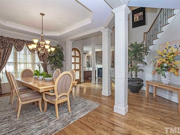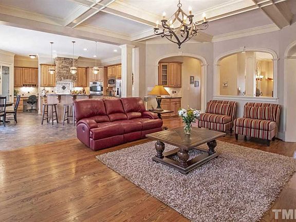 Live where there is room to enjoy life! .72 acres of the prettiest land in cary's #1 luxury neighborhood with the finest workmanship. 5 BR, 4.5 BTH in your stunning custom executive home on a cul-de-sac. Scrnd porch w/fireplc overlooks incredibly private outdoor living w/2 firepits, water fountain & custom tree house. 3 car grge, workshop, large sz rms including 1st flr gst rm & full bth. Huge media rm, large MST w/endless walk-in-closet. Pool community, trails that connect to the American Tobacco Trail.