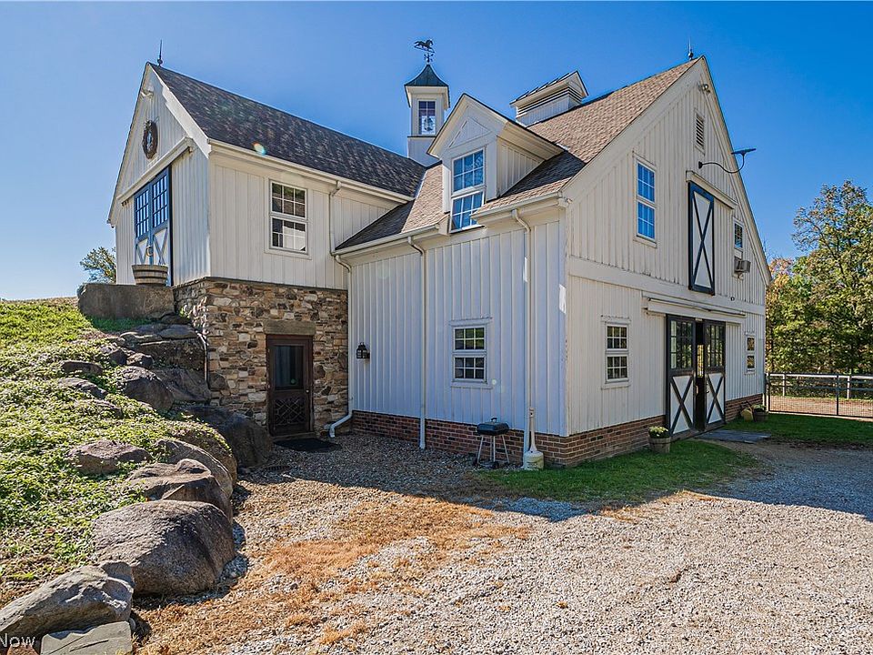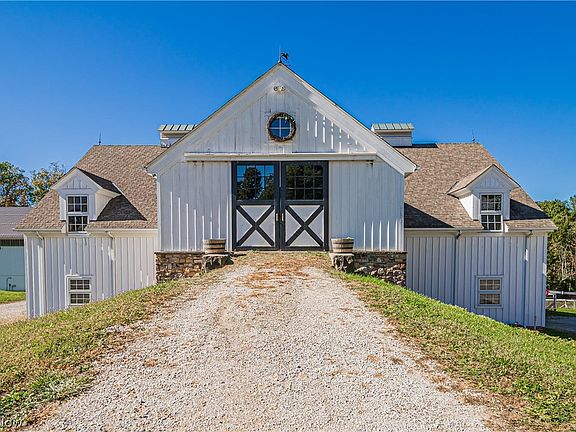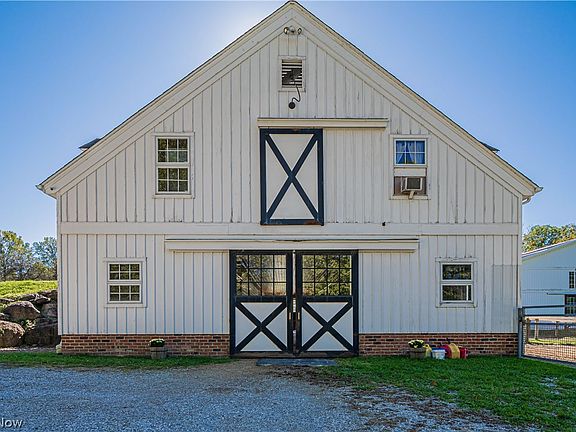 Welcome to this truly remarkable 14 acre state of the art equestrian horse facility perched on one of the highest elevations in Chardon giving you unobstructed sunsets views and back up to the Holden Arboretum!! The Tony Paskovich designed barn is an architectural masterpiece. The barn is a one of a kind featuring(7)13x13 horse stalls with gorgeous solid wood tongue & groove paneling that covers all walls & ceilings each with direct access to 3 of the horse pastures giving the horses free range of the property. There is a separate horse wash bay with concrete floors with ample drainage throughout. The lower level of the barn also features a tack room, an updated full bath & a visitors lounge area with kitchenette & its own separate entrance. Upstairs is architecturally stunning with wood paneled vaulted ceiling & gorgeous solid wood 8"x16" wood beams. There is a 1 bedroom apartment with a full kitchen, living area with double french doors that lead to balcony overlooking the rear past