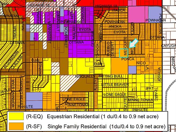9.55 ac R-SF vacant land across the street from Vanguard Prep, one of the most desirable schools in Apple Valley. Previously mapped for 17 lots (expired), this parcel has great potential for future development at under $12,000 per potential lot. Located less than a mile from Hwy 18 and just SE of The Village.