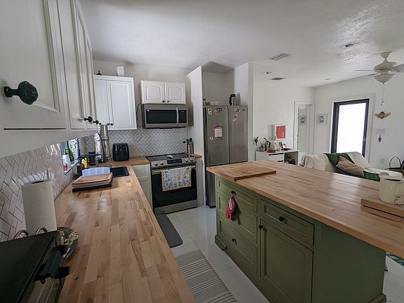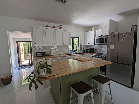 2 Bed, 2 Bath House with a family room and attached independent studio with wet bar (1/1) for Rent in Miami Shores. This peaceful and well-lit home near Barry University features a master bedroom with an ensuite bathroom, walk-in closet, and access to a spacious backyard deck. The lush outdoor space includes an outdoor bathtub, moringa, avocado, lime trees, a mango tree in the front, and an HE washer and dryer on the deck. There's also a bright Florida room, perfect for a home office or exercise space. The home offers modern conveniences like central AC, stainless steel appliances, a kitchen island, and a dishwasher. Fenced parking for 2 cars, street parking for 2 more cars. Roof and AC renewed in 2022, septic tank. After background check approval, First month and two months security deposit.